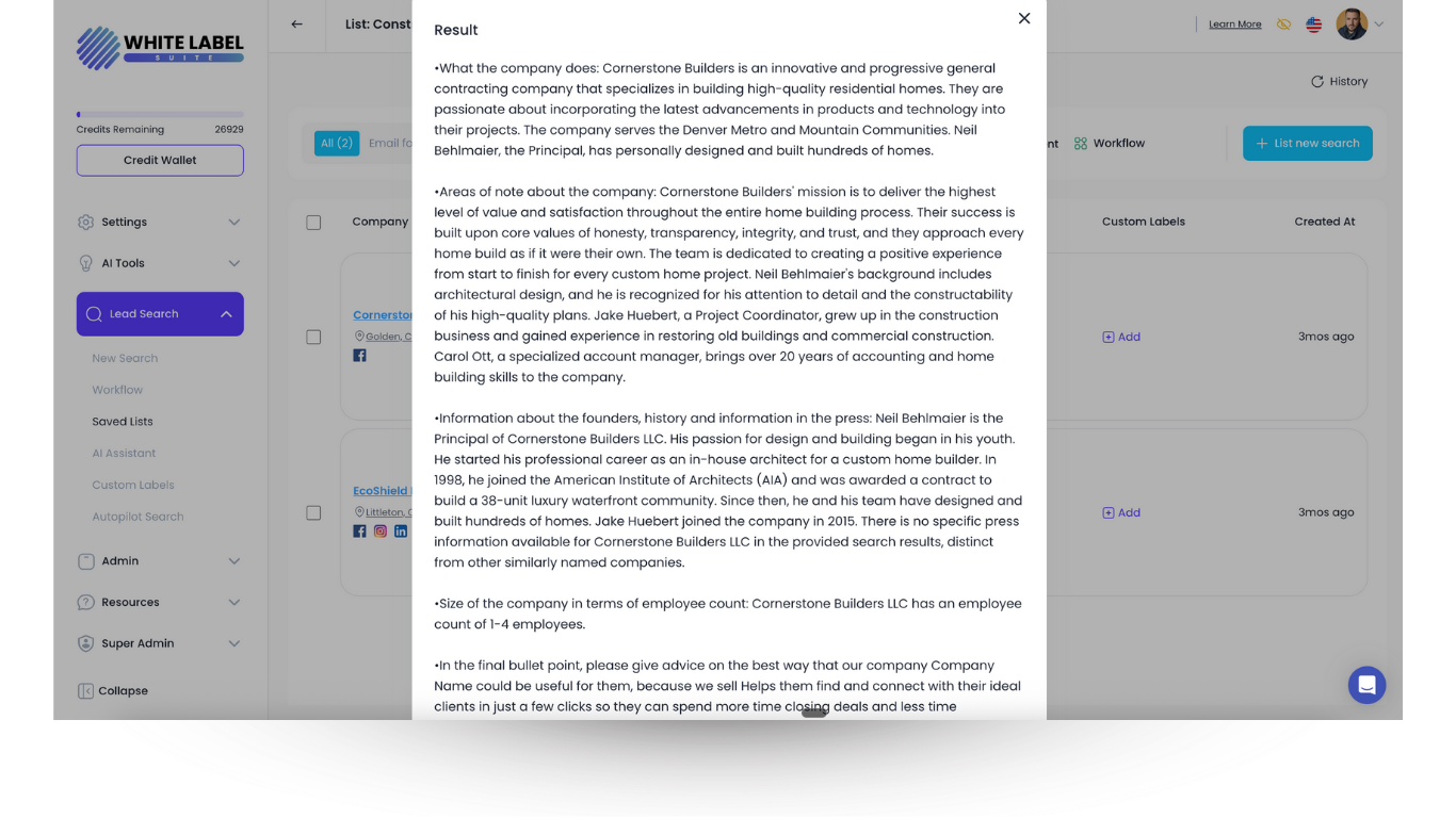 Proprietary AI researches every prospect, pulls company data, and generates a complete sales brief.
